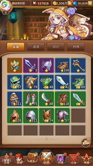 集齊失落在冒險大陸的各種神器后就能進行神器培養了,經過培養的神器將在戰斗中提供屬性加成,不同的神器還有各自專屬的神器技能,讓你輕松獲得戰斗勝利。