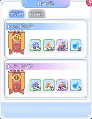 分別分為【青銅】【白銀】【黃金】【鉆石】【王者】【神話】六個段位,每個段位還分為三個級別。每達到一個段位級別時,還能領取相應段位獎勵。且不止有段位獎勵,還有排名獎勵。排名獎勵分別為頭像框【冠軍之證】【涅槃之證】【卓越之證】,激活頭像框能提升基礎屬性。