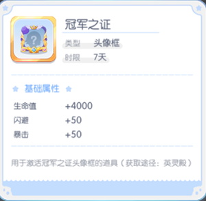 貼心小提示:【冠軍之證】【涅槃之證】【卓越之證】激活有效期為7天。