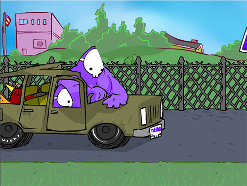 1、在游戲的開(kāi)始便是大力士開(kāi)著車(chē)帶兒子來(lái)幼兒園;