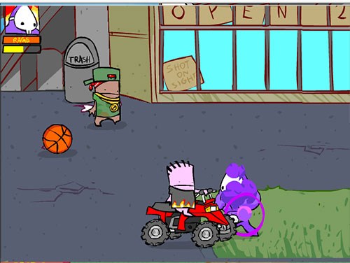 第八關(guān):賽車(chē)道。這一關(guān)要小心開(kāi)汽車(chē)的兩個(gè)小孩撞你,用籃球或用足球扔他,會(huì)將車(chē)打爆,用甩拳沒(méi)多大用,推薦用球打他。想冒險(xiǎn)一下的話(huà)就等車(chē)來(lái)時(shí)用拳頭揍他,也會(huì)打爆的,有一定的危險(xiǎn)性。