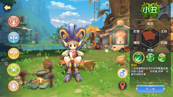 這是一個崇尚自由信仰的奇特職業,小丑的魔力和攻擊力都很平均,但動作又很迅速敏捷。他們善于使用有趣又搞笑的技能,能夠遠距離投擲飛刀對敵人造成傷害,同時也擁有許多輔助性的技能。他們的能力值屬性以敏捷、智力、精神為主。