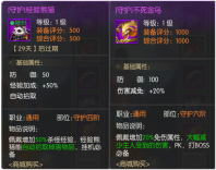 除了普通裝備之外,還有額外的守護裝備,可增加玩家打怪經驗加成或減免傷害加成,實乃打怪升級和PK打boss的神器。