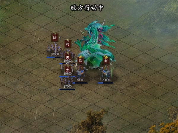 (1)青龍為占地四格的弓兵部隊,無法攻擊和移動,只會施法,第七回合開始行動。由于占地四格所以需要玩家部隊調(diào)好站位觸發(fā)連攜,打一個角就行,注意站位。