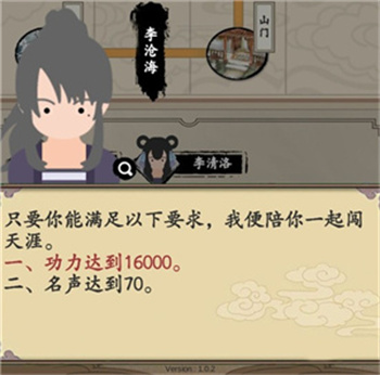 等到貢獻達到【門派長老】 學習新的武學升級后招募【縹緲峰】里的【李滄海】