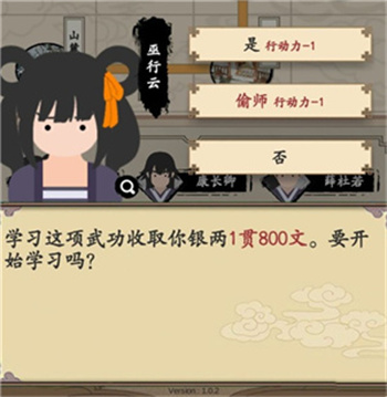 2、學習新武學的時候,是隨機從0成到5成(0成是偷師時才會出現),湊齊十成以后學習成功。