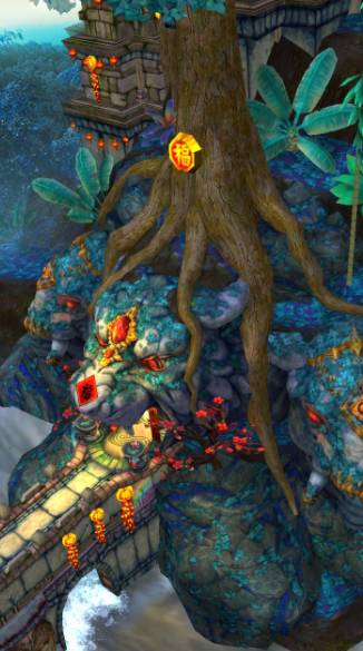 第二種:第二種方法并沒有提到需不需加速道具,只是說在遇到懸崖時,玩家可以直接跳下去,但是在跳下去的同時手機要傾斜一下,這樣也有幾率可以觸發這個Temple run2 Bug。