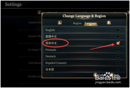 這時候移動鼠標,點到第三項“簡體中文”,簡體中文后會顯示打勾,點擊確定就設置成功了。