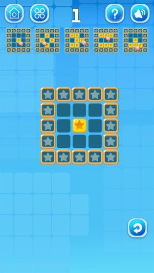 4)翻轉周圍方塊:玩家需要點擊金色星星,將周圍的方塊翻轉,找到相同的星星進行消除,挑戰自己的注意力和反應速度。