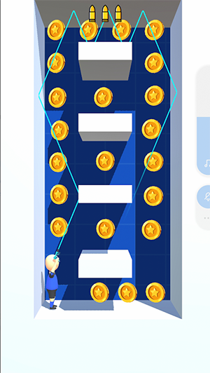 3.我們在這里還要充分利用反彈功能,因為這里會有非常多的擋板,我們要充分利用這些擋板,讓子彈通過擋板快速的反彈到敵人那里,就可以快速的射擊敵人。