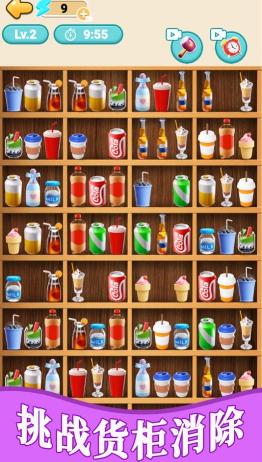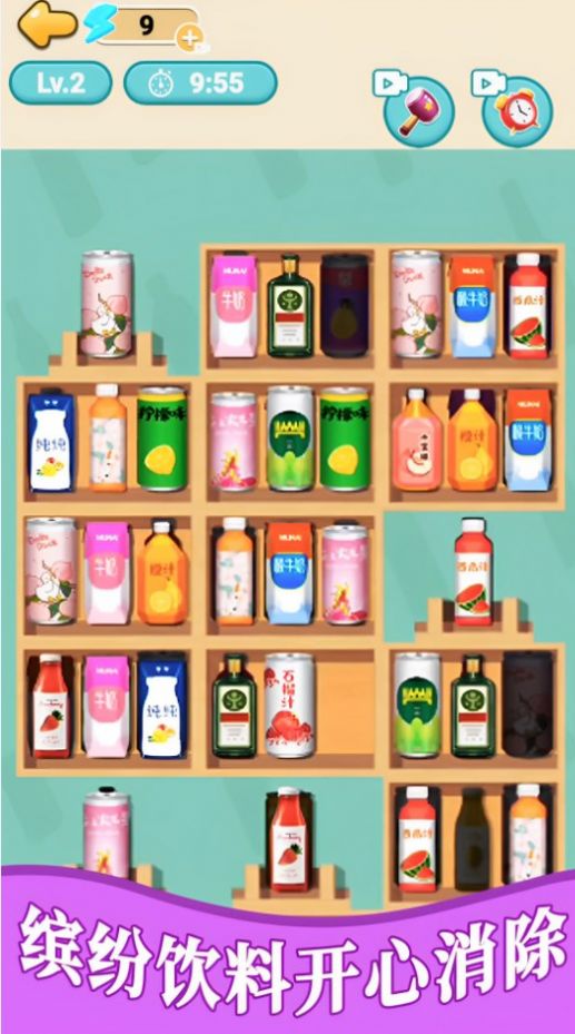2.玩家可以輕輕點擊屏幕里面的飲料,把一樣的擺放在一起。