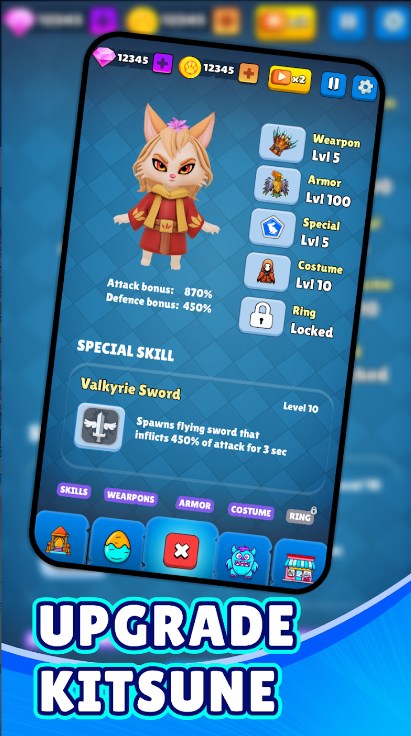 狐妖無盡掛機游戲,是一款風格可愛的角色扮演類游戲。它融入了無盡AFK元素,既重視掛機戰斗,又需要玩家制定戰略與策略。游戲畫面精美,動畫效果出色,能讓玩家沉浸式體驗狐妖主題的游戲世界。在游戲里,玩家將去探索未知的地圖與領域,挑戰形形色色的敵人和關卡,成為無盡RPG動作游戲領域的標桿,收獲全新的挑戰與樂趣。