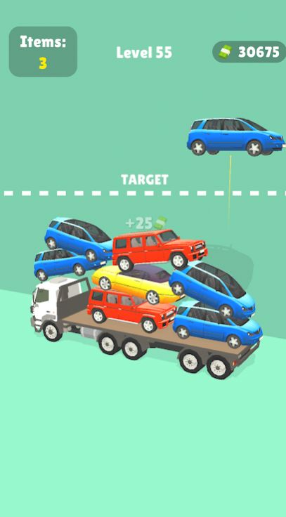 玩家能夠通過持續(xù)闖關,摸索出更多堆放舊汽車的竅門。不斷挑戰(zhàn)自身極限,就能運輸更多車輛。游戲商店里備有各式各樣的道具,玩家可用金幣進行兌換。在運輸途中,還能借助這些道具,助力自己更快地闖關。