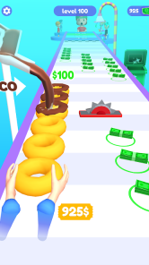 1. 玩家得操控好角色,持續(xù)在賽道上奔跑,與此同時,還要接住各類不同的食材,以便能夠制作出冰激凌或者甜甜圈。
