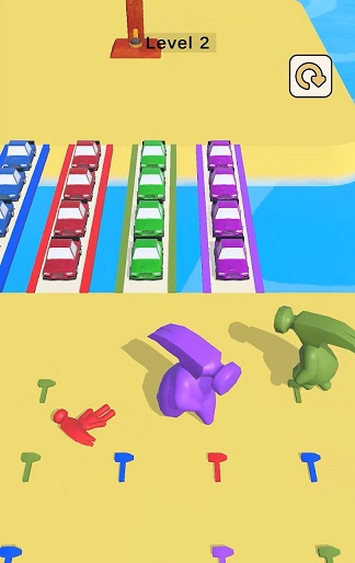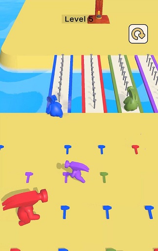 2.你需要將相同顏色的釘子收集起來,這樣才可以快速的通過橋梁。