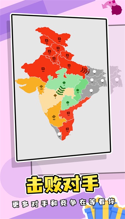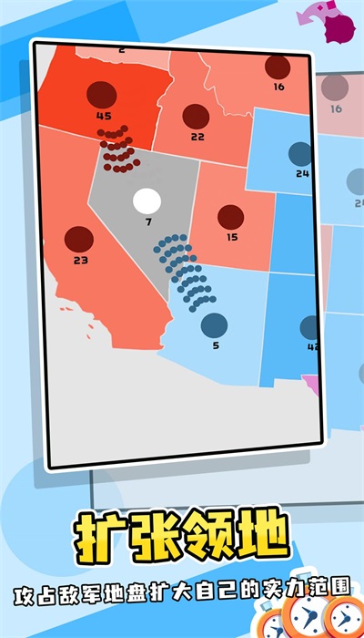 1:為玩家呈現(xiàn)了一款全新的策略類戰(zhàn)爭(zhēng)游戲。該游戲主要通過(guò)地圖形式展現(xiàn),玩家唯有持續(xù)拓展自身領(lǐng)地,方可戰(zhàn)勝敵人。