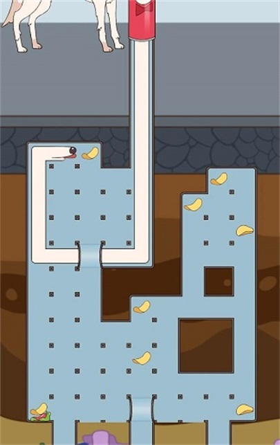 1玩家需格外留意,操控長嘴狗吃薯片時,絕對不能觸碰到墻壁或障礙物,一旦碰上,游戲即宣告失敗。
