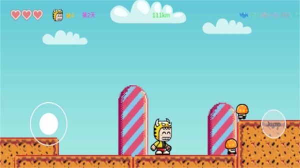 1. 呈現出卡通風格的游戲畫面,十分可愛,采用的是極為經典的橫版闖關玩法。