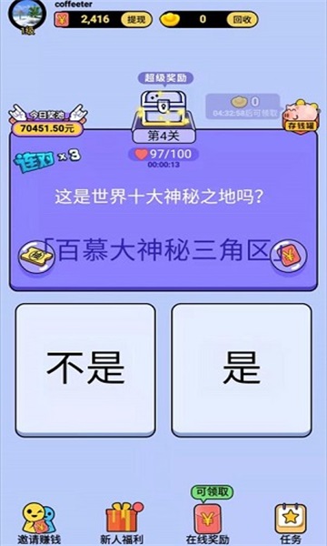 4)每個關卡的答題要求以及收集金幣的數量都各不相同,玩家可以在游戲中兌換紅包。