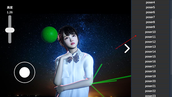 4、姿態(tài)中包含幾十種可免費(fèi)使用的POSE,點(diǎn)擊對(duì)應(yīng)的pose,左側(cè)模特便會(huì)做出相應(yīng)動(dòng)作。