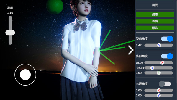 3、點(diǎn)擊模特,你可以調(diào)整模特的姿態(tài),表情、服飾等;