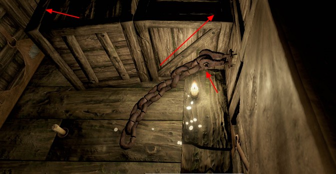 沿著此處鐵鏈跳上去,上面有一根蠟燭,然后斜對面隱藏有一根蠟燭