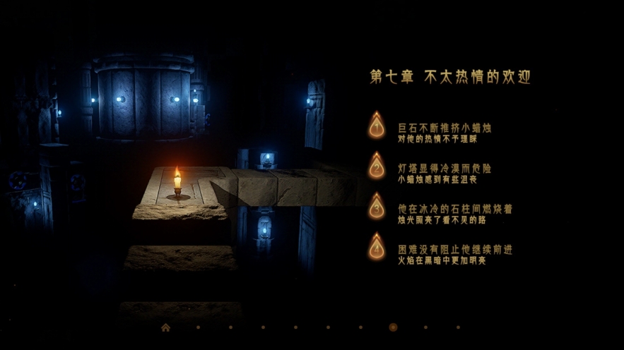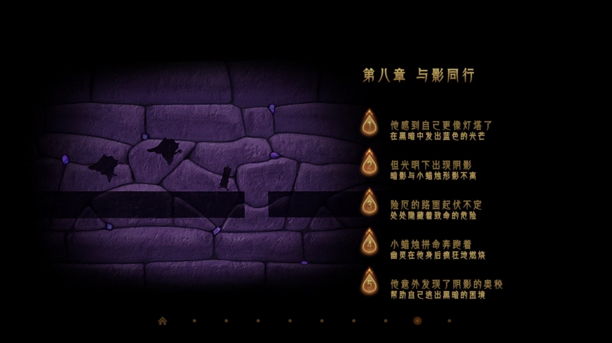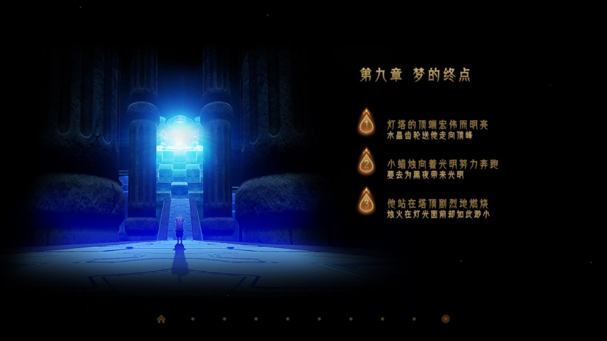 1、更新后的章節(jié),尤其是第九章,是最最不容易漏掉蠟燭的地方,我三十分鐘通關(guān)第九章全收集蠟燭炒雞容易的。