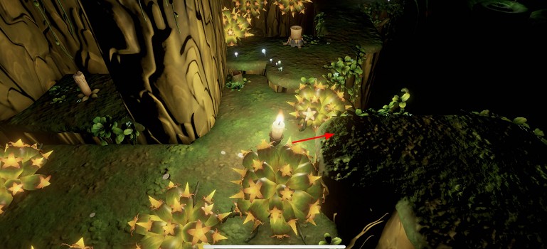 第四章第一節(jié),點擊屏幕右邊燃燒蠟燭的同時點亮小蘑菇,跟隨小蘑菇發(fā)光的線路,這里躲著個小蠟燭哦